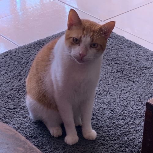 (“Ramshi-ramshesh”, “Papote”, “Gato-gatón”, “Papote-papotón”) Ramsés es, en esencia, un idiota funcional. Si los animales se reúnen a compilar un diccionario, bajo “Bolsa, suj.” estará la foto de Ramsés. Nos conocimos al casi matarlo con mi carro. Estaba desnutrido y metido en el espacio del motor buscando calor. Me enteré cuando prendí el carro, y pegó el grito. Resulta que estaba bien, pero en querer agarrarlo para alimentarlo, me mordió. Esa fue la primera y única vez que fue otra cosa que una máquina de comer y de dar y recibir cariño. Cuando ronronea se siente en la escala Richter. Sus hobbies incluyen: comer Purina Pro Plan. Fin de la lista de hobbies. Cuando un gato callejero se acerca a la casa, Ramsés elige pegarle a mi perra, que la tiene más cerca. No cuente con él, sino para dar y recibir bojotes de cariño. Castrado, vacunas al día, y desparasitado.