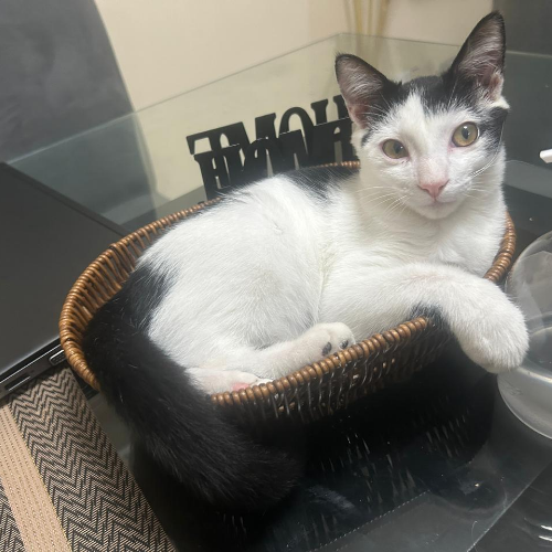 Tiene como un año de edad, es juguetona. Se lleva bien con otros animales y está esterilizada.