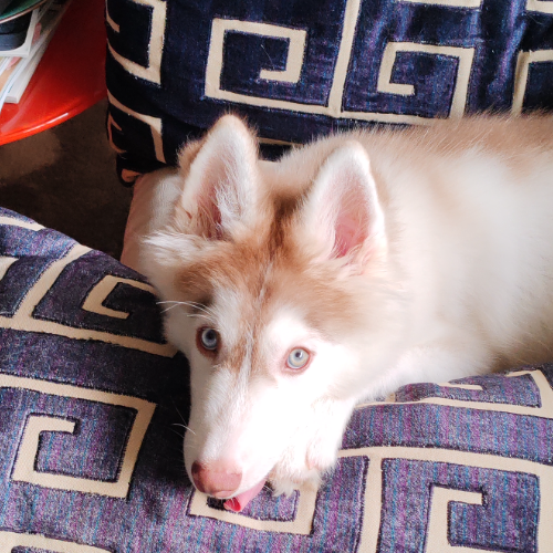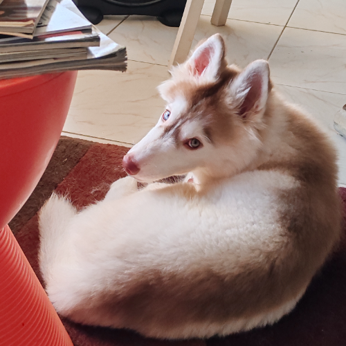 Tiene 4 meses y es muy jugueton, tremendo tambien, necesita un patio y mucha atencion ya que todavia es cachorro. Es muy bueno. Es un husky siberiano crecera entre mediano/grande.