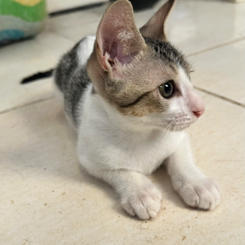 Gata bebé, de personalidad juguetona, rescatada de días de nacida. Busco adopción responsable para vivir dentro de casa, en un hogar amoroso. Tiene tres meses de edad, sabe usar la arena.