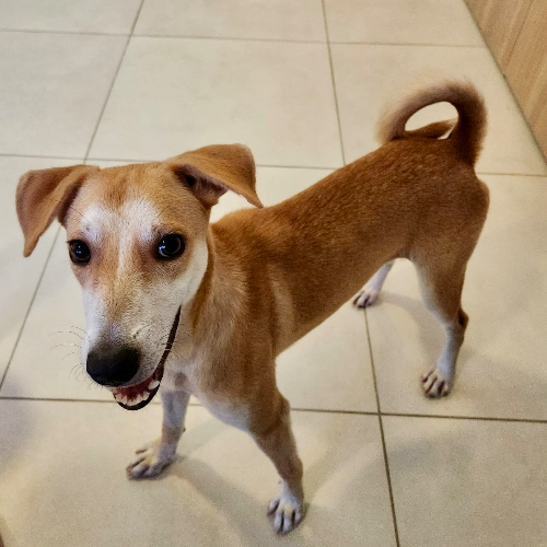 La pequeña Pancake fue encontrada hace poco más de un mes, caminando sola cerca de Galería 360. Es una perrita joven de menos de un año y pronto será esterilizada y vacunada. Es una perrita muy cariñosa, le gusta acurrucarse y se lleva muy bien con otros perros e incluso con gatos. Demuestra ser muy inteligente, aunque aún no ha recibido entrenamiento. Sabe usar pads dentro de casa si es necesario, pero si se le dan paseos regulares, hace sus necesidades afuera. Le iría especialmente bien en un hogar con otro perro con quien jugar, y con un dueño que aprecie una mascota muy amorosa y leal. Tiene un tamaño ideal para vivir en apartamento. Pancake será una adición muy valiosa para su nueva familia. Info. (829) 764-5556