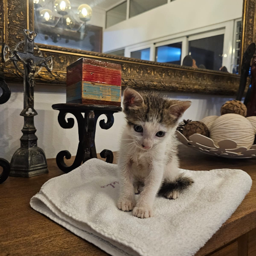 Gatito macho de 1 mes aproximadamente en ADOPCIÓN🩵 Donde está no lo pueden tener por mas de una semana‼️ Se entrega desparasitado y bañado. Ubicado en el Distrito Nacional. Cel. 809-696-1502