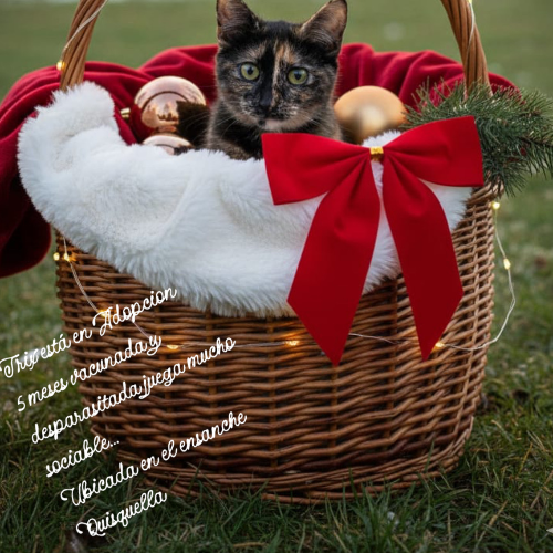 Soy trix tengo 5 meses estoy vacunada y desparasitada mi Castracion está cubierta al 100% A mi me abandonaron durante la temporada de tormentas con mis dos hermanitas solo quedo yo y mi hermanita Moon.. Uso arenero y como bolitas soy sociable ♥️ Busco casita y una familia que me ame mucho ♥️. Estoy ubicada en el Ensanche Quisquella