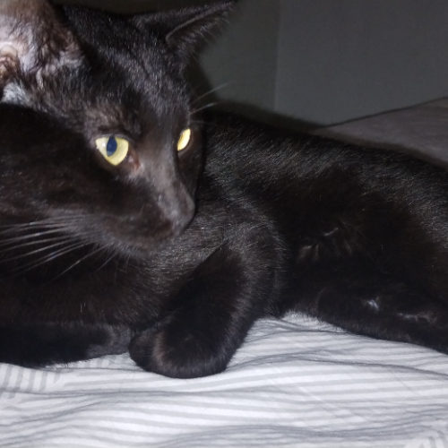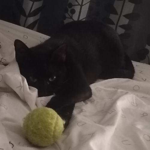Blackie es un gato muy independiente, al que le encanta jugar con cualquier cosa y perseguir juguetes. Le cuesta abrirse porque es tímido pero es muy bueno y fiel.